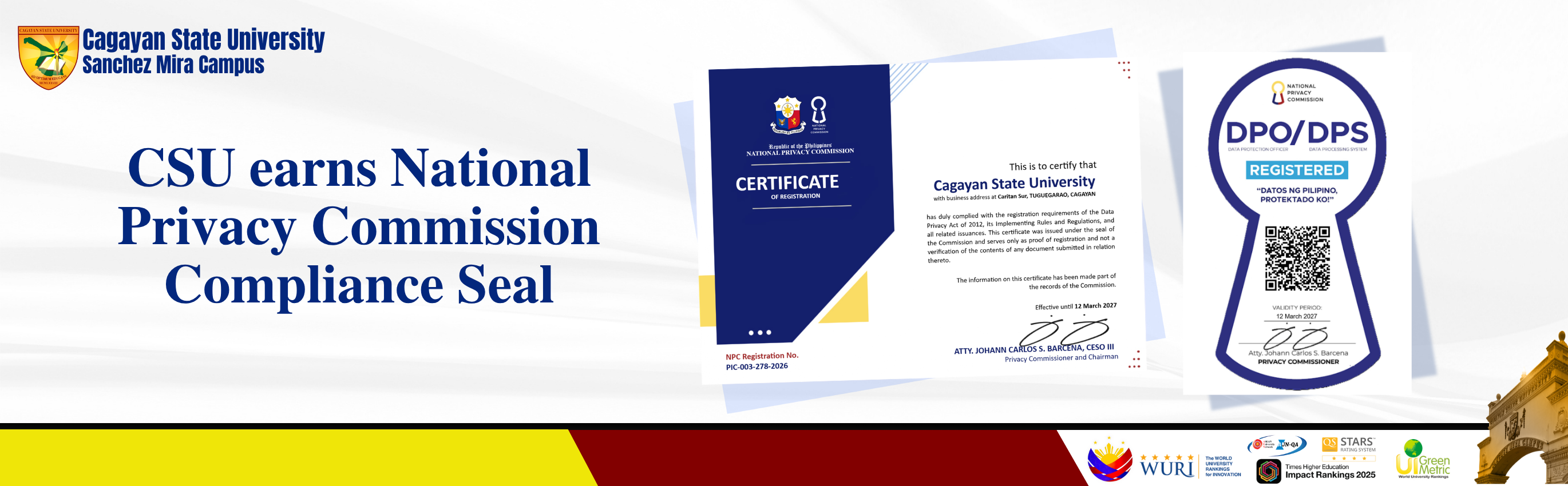 Recognizing the university’s adherence to data privacy standards and its commitment to protecting personal information, Cagayan State University (CSU) has been awarded the National...