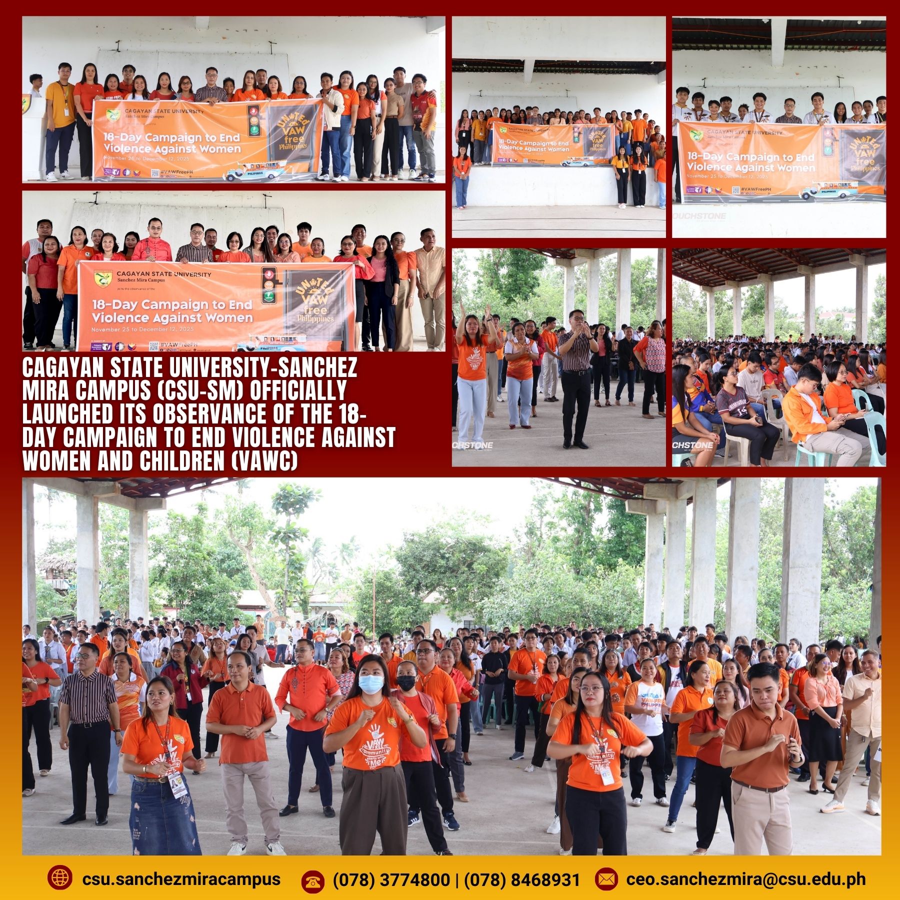 Cagayan State University–Sanchez Mira Campus (CSU-SM) officially launched its observance of the 18-Day Campaign to End Violence Against Women and Children (VAWC) on November 25 at the campus new gymnasium, carrying the theme “United Free VAW Philippines,” in support of the nationwide initiative to strengthen the fight against gender-based violence.